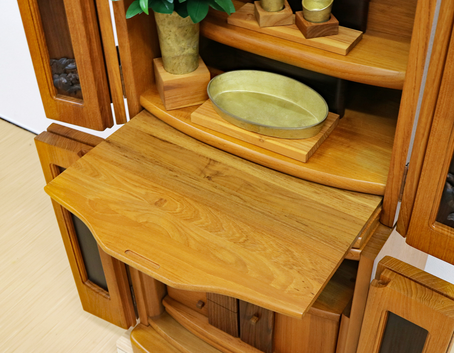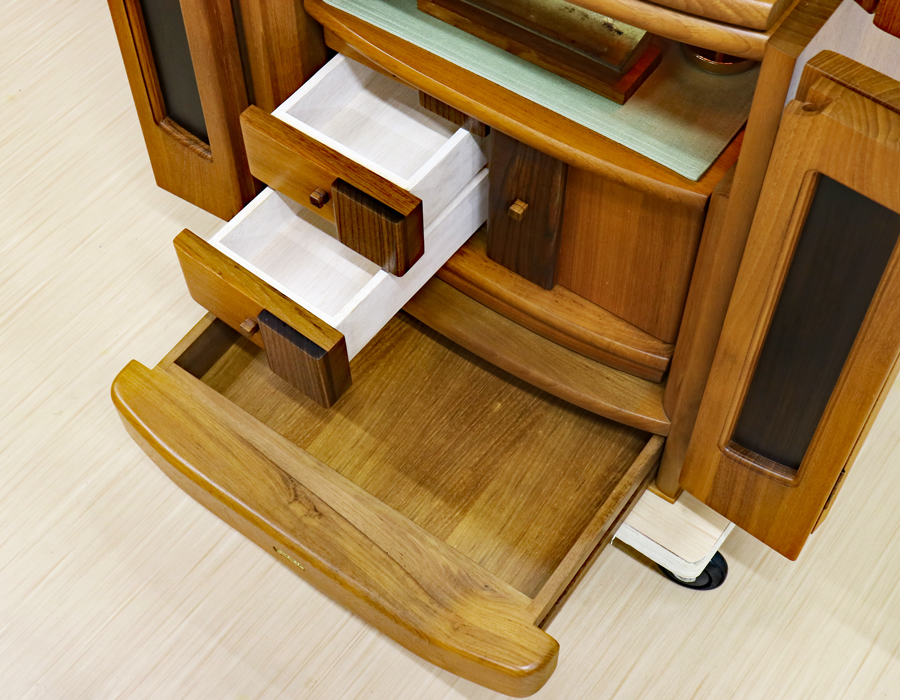 厨子内にはチーク・本黒檀無垢をふんだんに使用した木のぬくもりを感じるようなデザインとなっております。