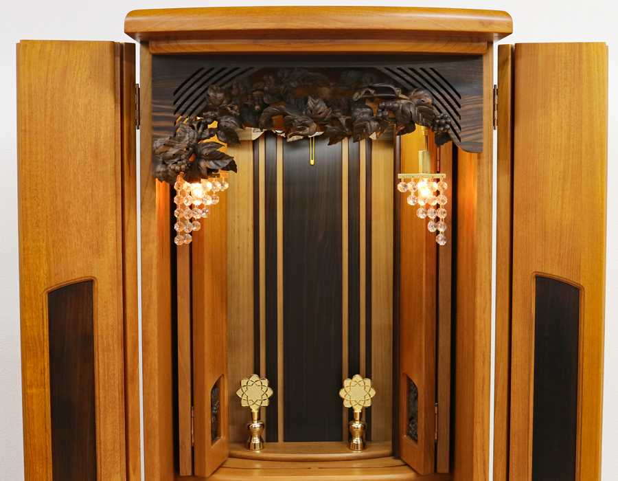 内部には蛍光灯照明(10w)も付属していますのでご本尊様を明るく照らしてくれます。