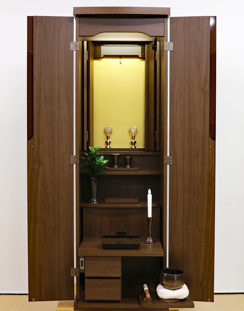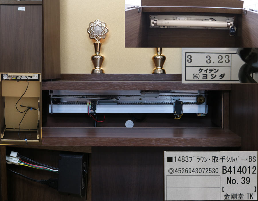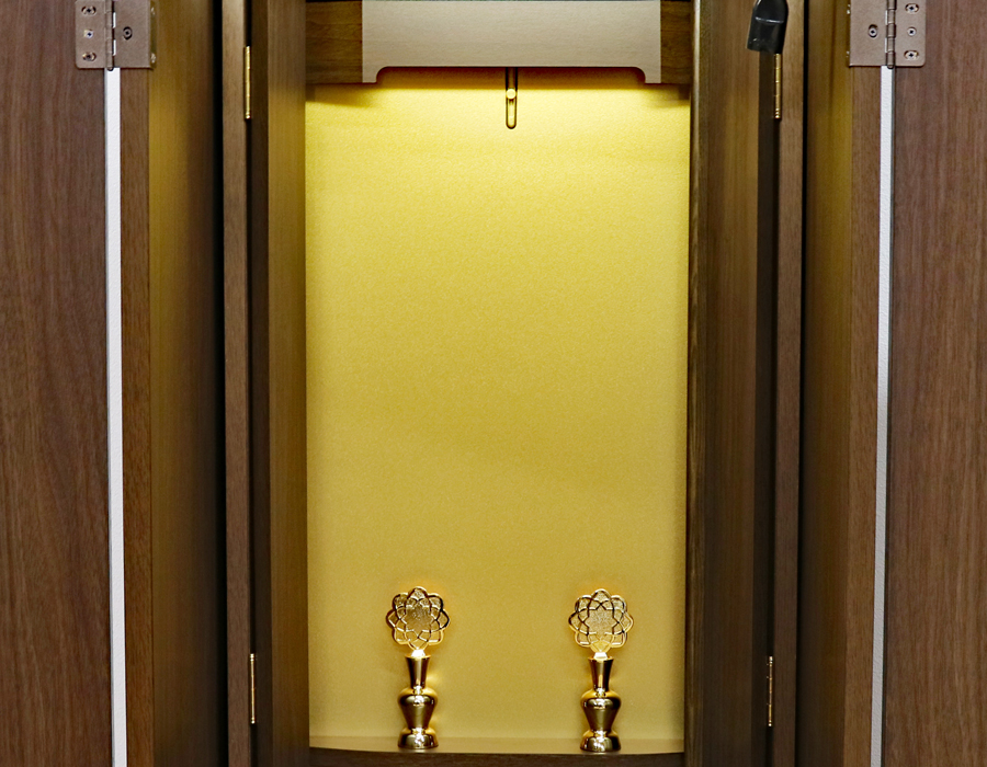 内部には蛍光灯照明も付属していますのでご本尊様を明るく照らしてくれます。