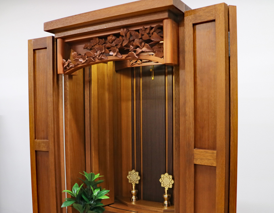 三方開きのお仏壇ですので斜めからでもご本尊様を拝すことができます。