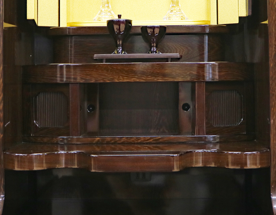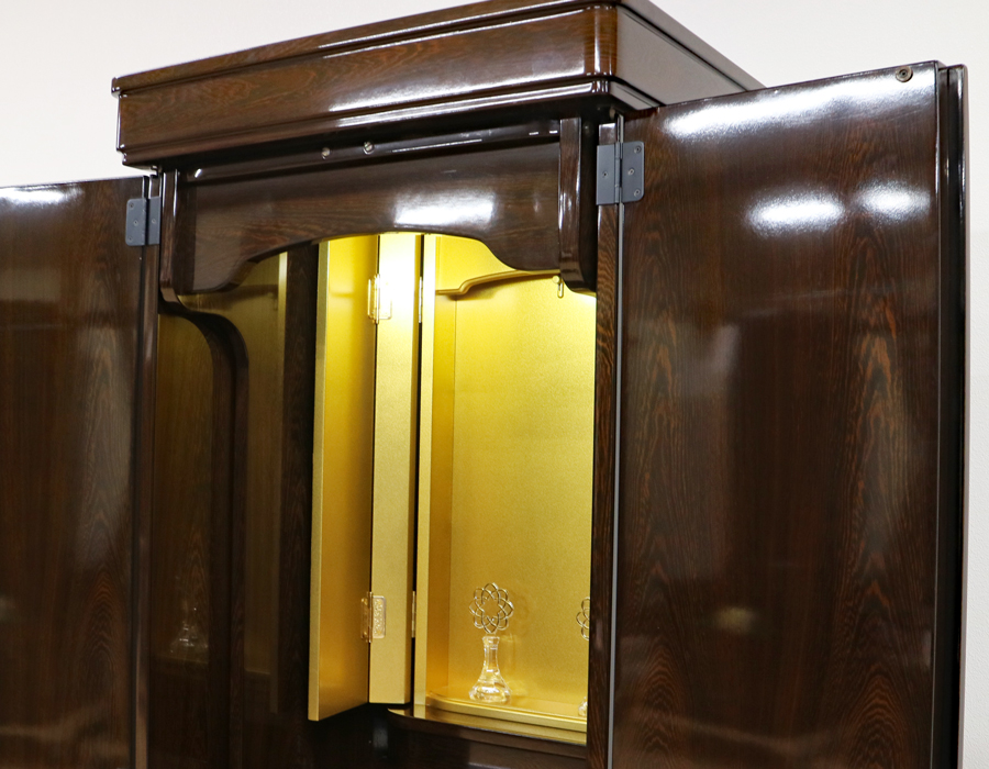 押し込み式大戸ですので、押し込むことで斜めからもご本尊様を拝すことができます。