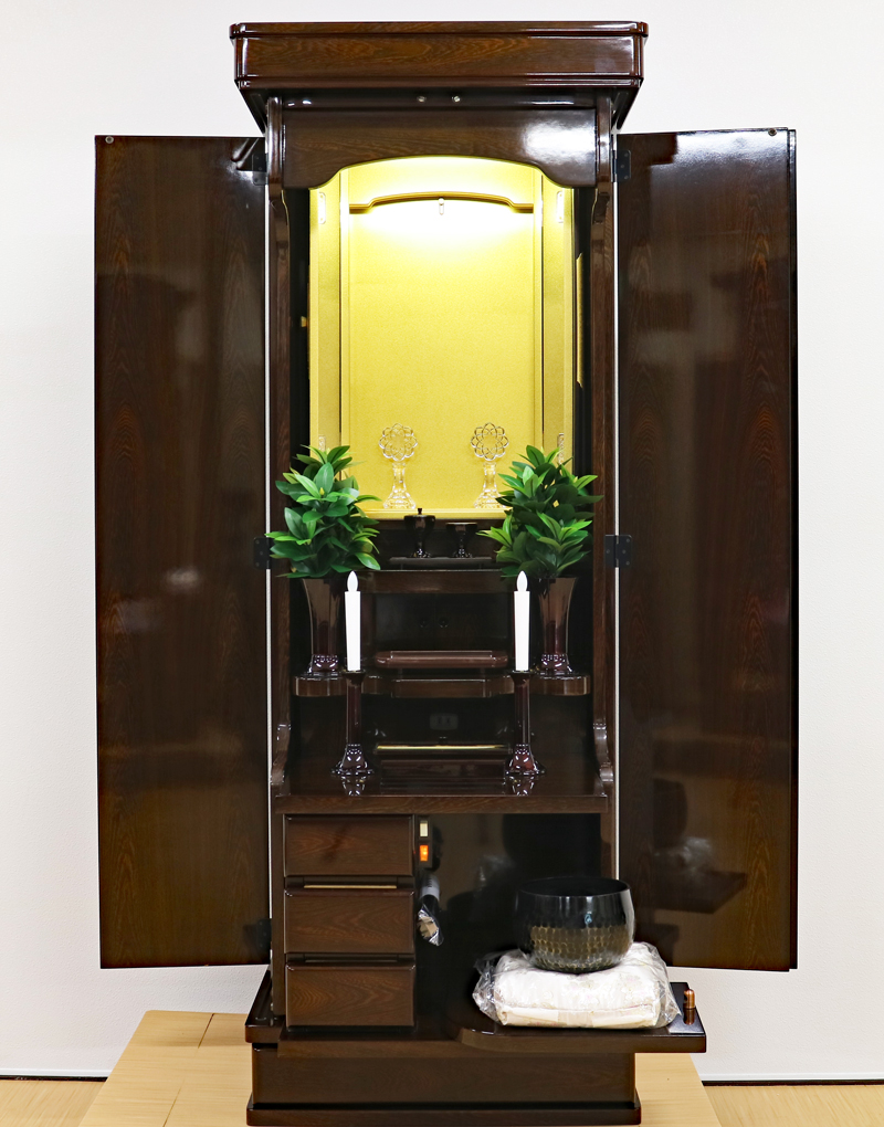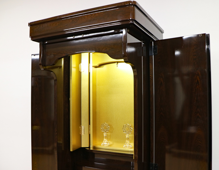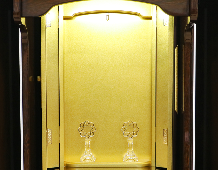 内部には蛍光灯照明が設置されておりますのでご本尊様を明るく照らしてくれます。