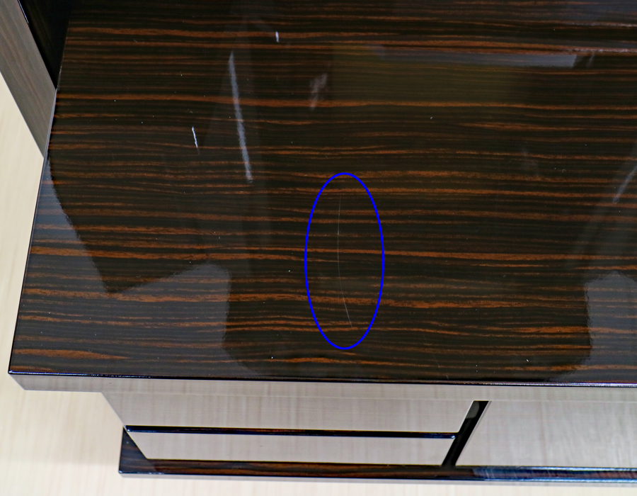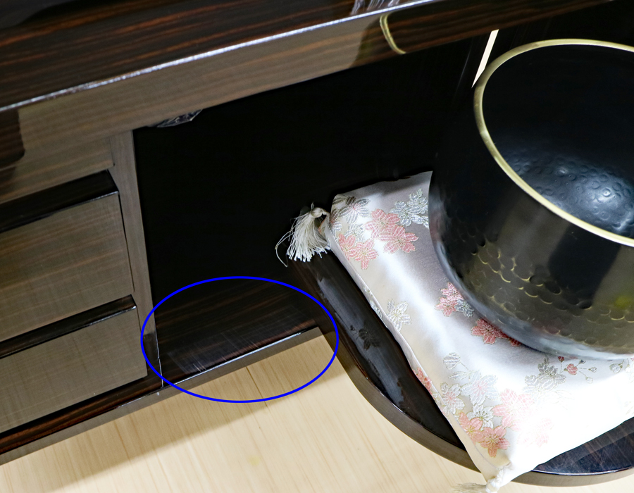 三宝にひび(黒檀薄板張りの部分)が見られます。