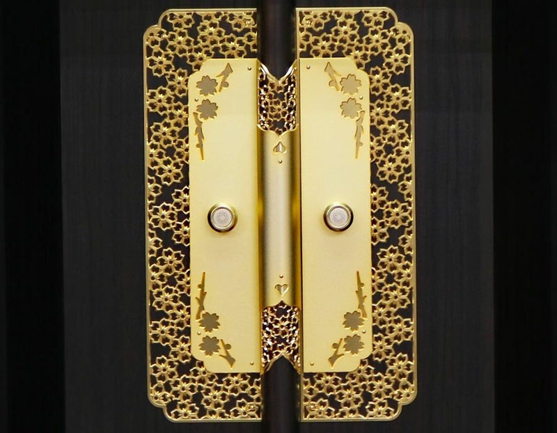 本金箔と金色塗装では輝きが違うのは一目瞭然です。 内部には蛍光灯照明も付属していますのでご本尊様を明るく照らしてくれます。