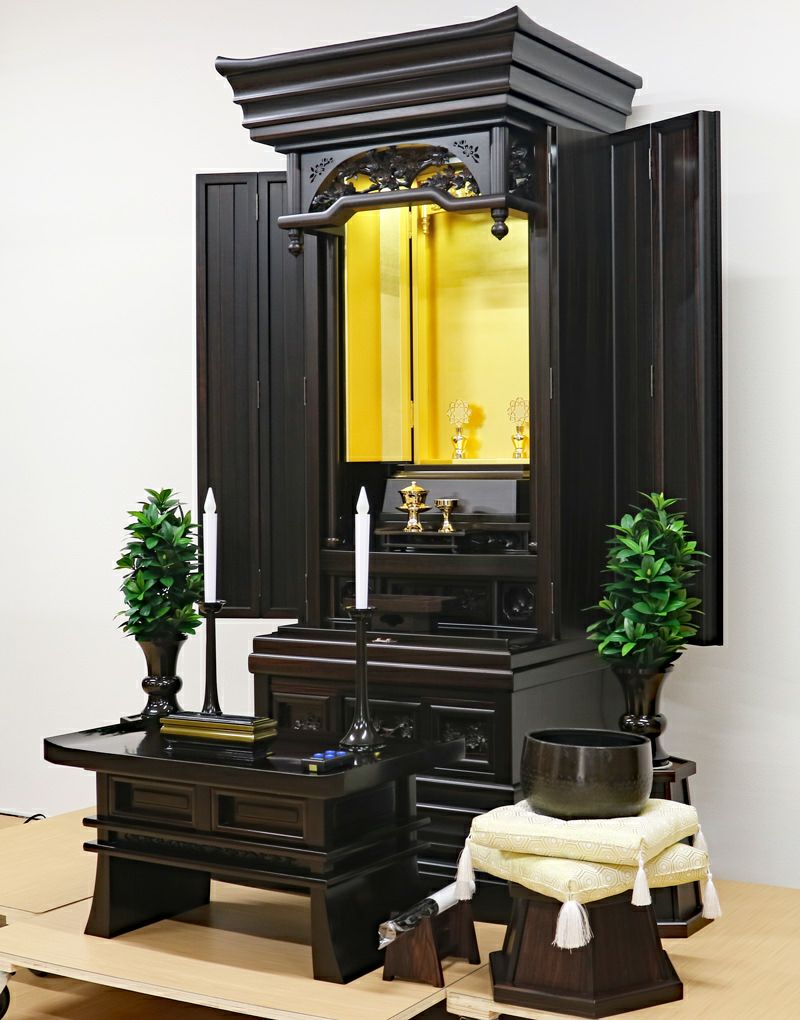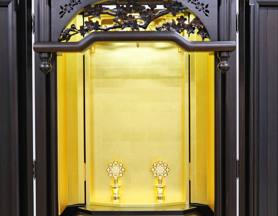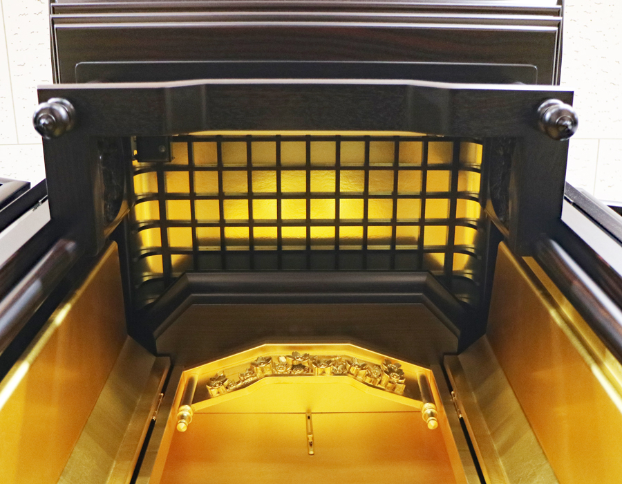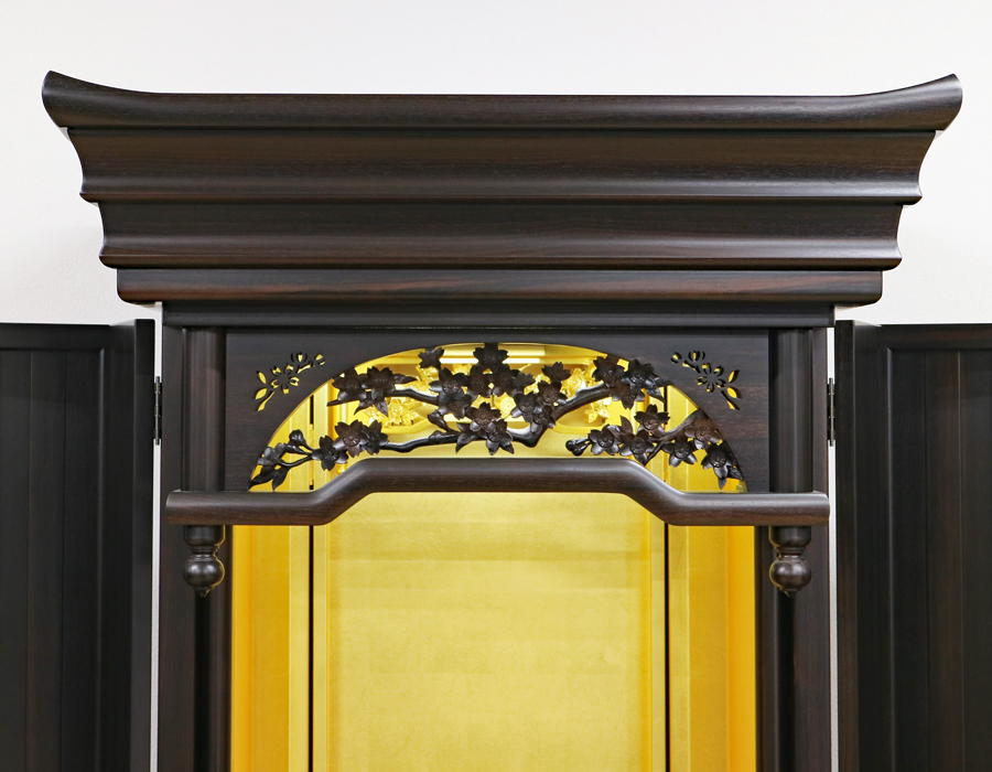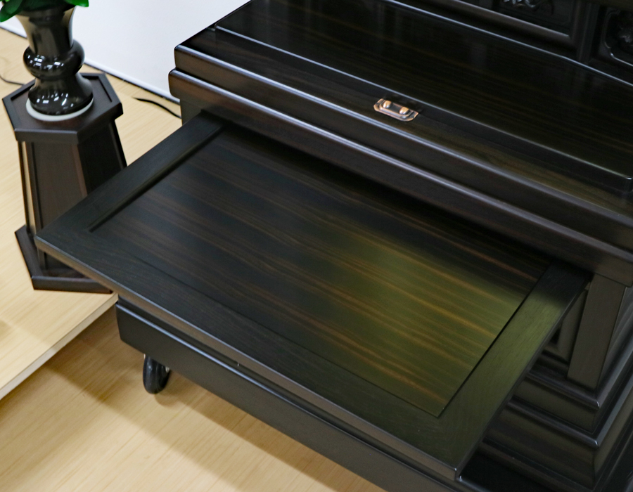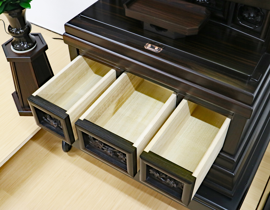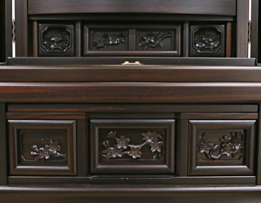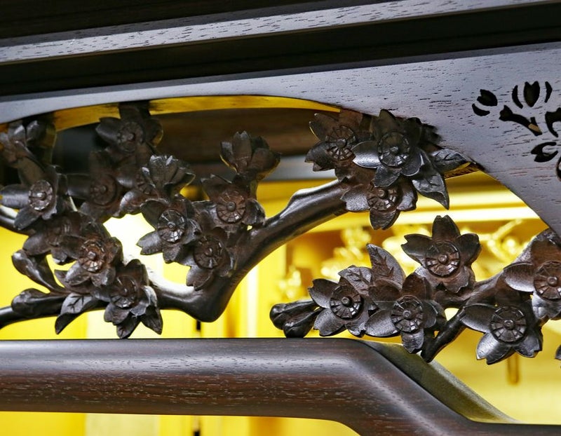 仏壇には、いたるところに黒檀の職人こだわりの彫が施されております。
