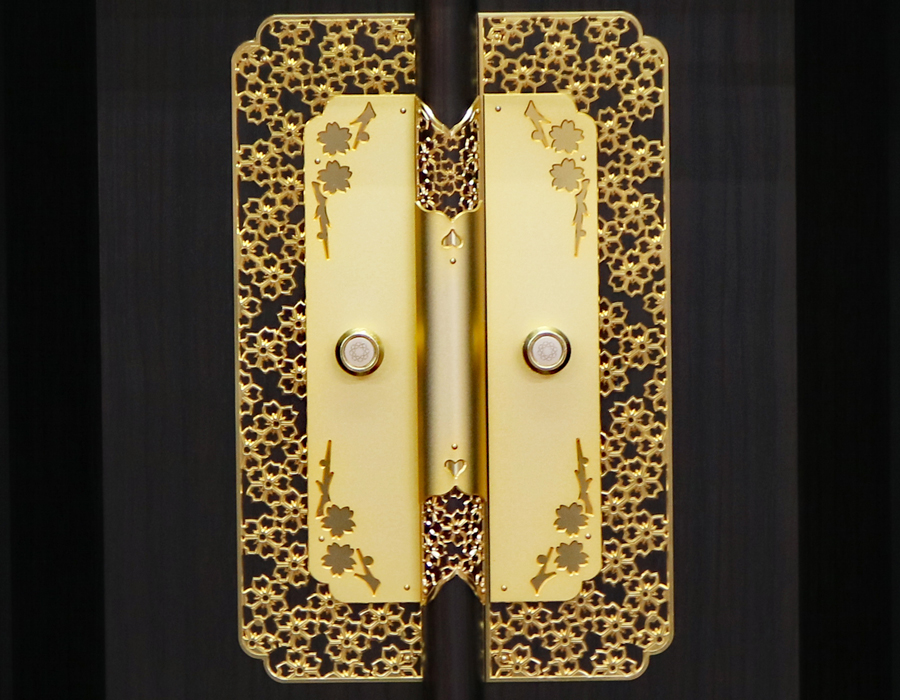 欄間には、黒檀の無垢板をふんだんに使用して、 桜模様の彫りを立体的に仕上げています。