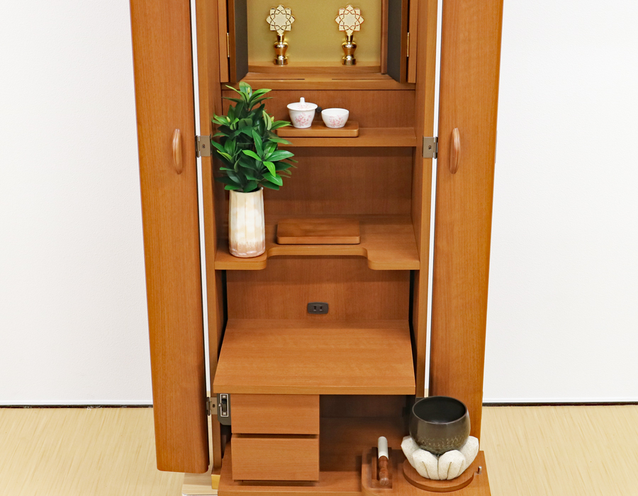 内部には蛍光灯照明も付属していますのでご本尊様を明るく照らしてくれます。
