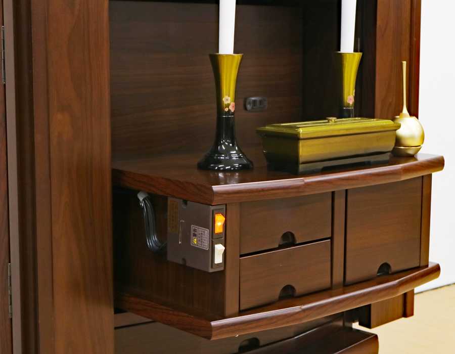厨子下に蛍光灯照明(6w)が設置されておりますので、ご本尊様をライトアップいただけます。