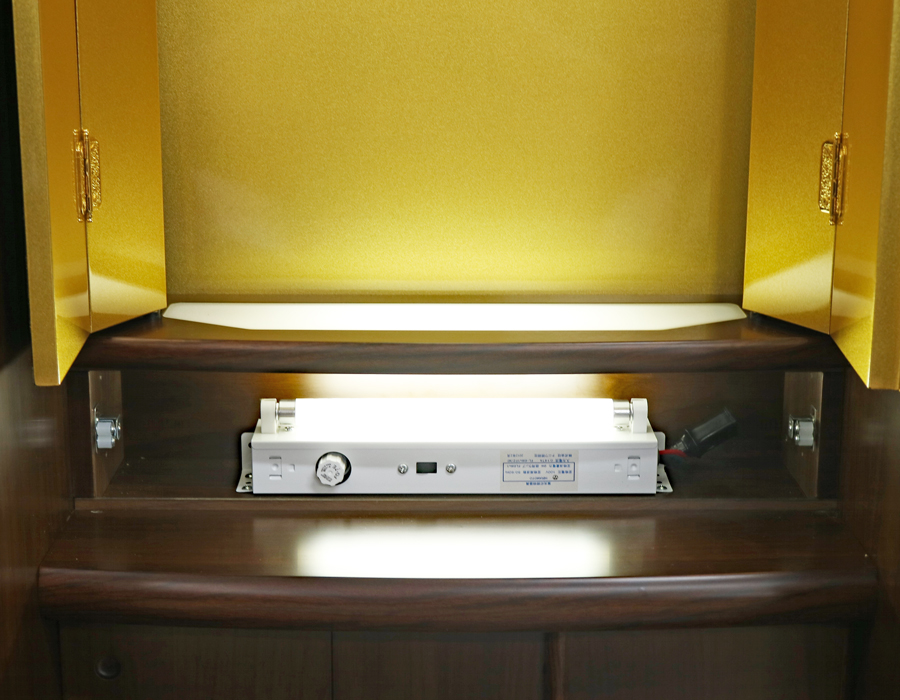 仏壇内上部には、蛍光灯照明が2か所(4w/6w)設置されております。