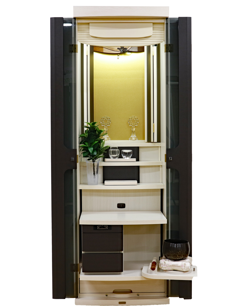 内部には蛍光灯照明も付属していますのでご本尊様を明るく照らしてくれます。