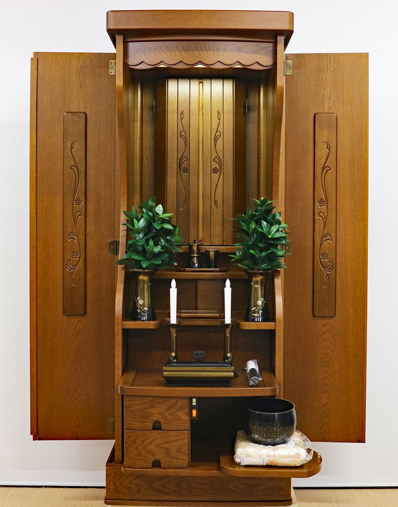 自然を意識した優しい感じの扉デザインとすることで、このお仏壇に素直な気持ちでご本尊様に向かうことができることでしょう。