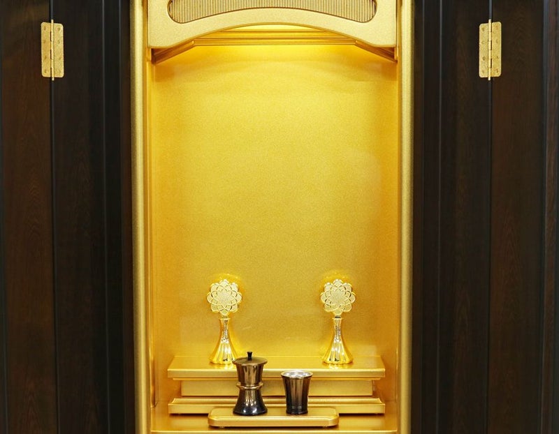 仏具付きを選択の場合、銅器製造で有名な富山県高岡市製の高級銅器仏具セットが付属いたします。