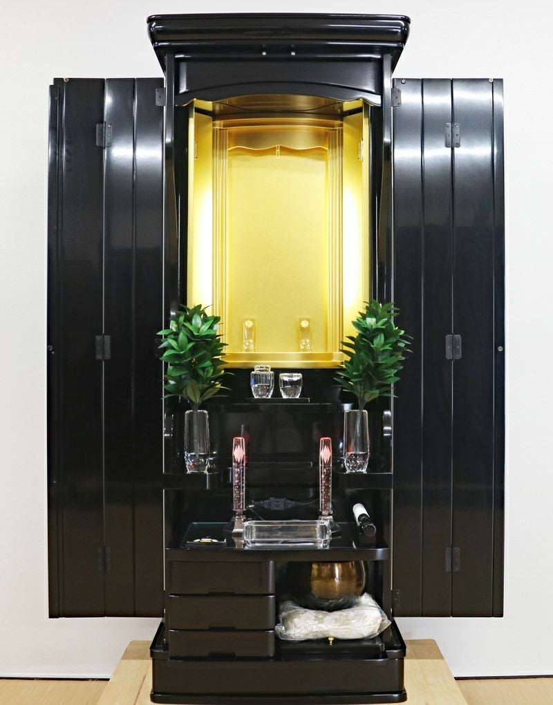 押し込み式の大戸ですので、押し込むことによって斜めからでもご本尊様を拝すことができます。
