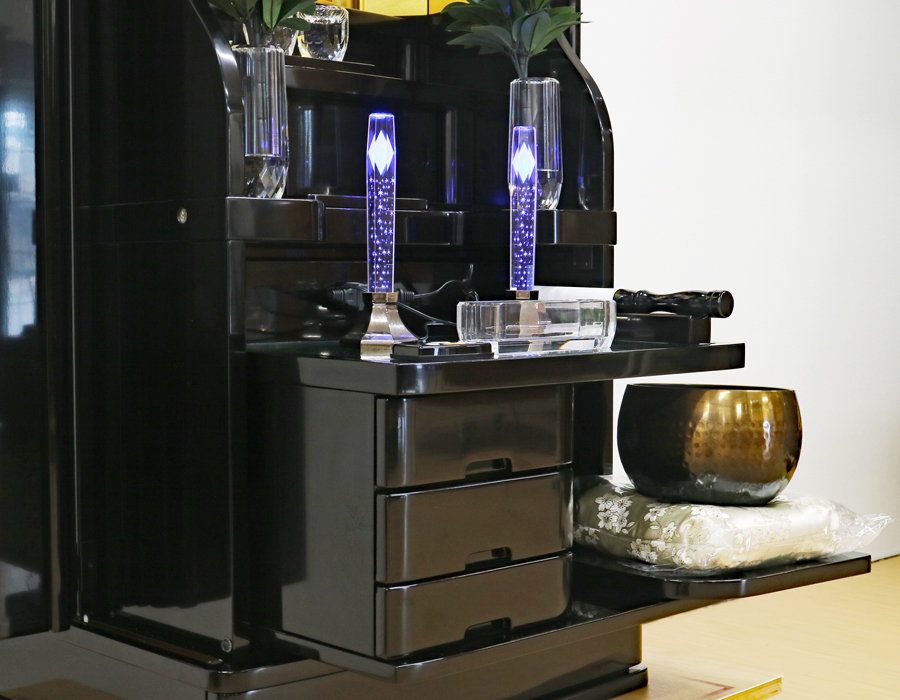 お厨子上部だけでなく、両脇にもLED照明が設置されている彩光厨子が採用されておりますので、ご本尊様を明るく拝すことができます。