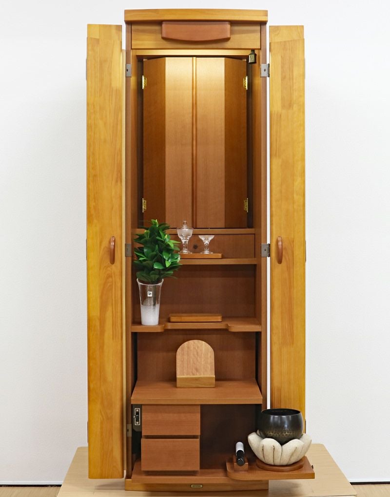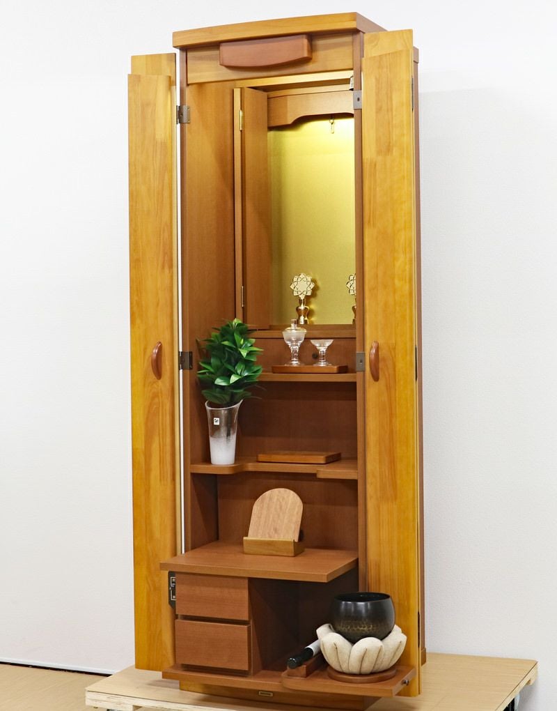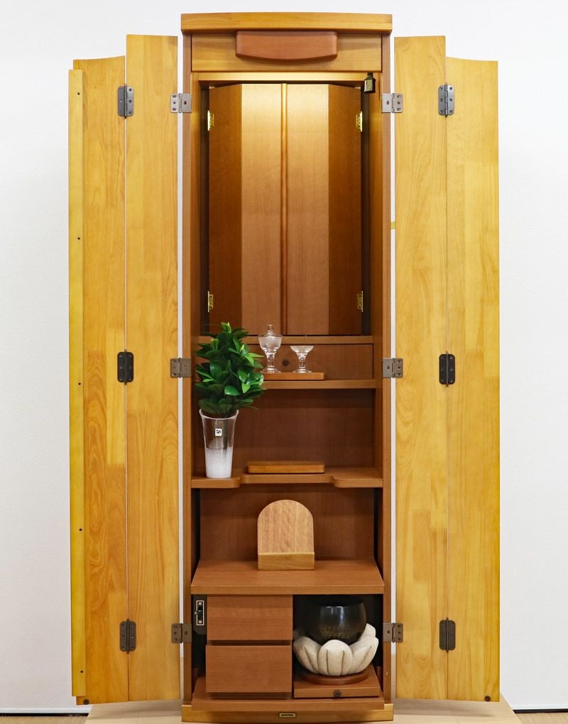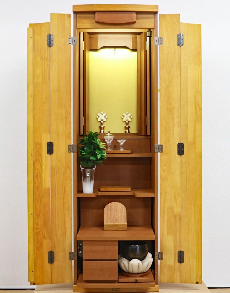 大戸にパイン材を使用したナチュラルデザインのおしゃれなお仏壇です。