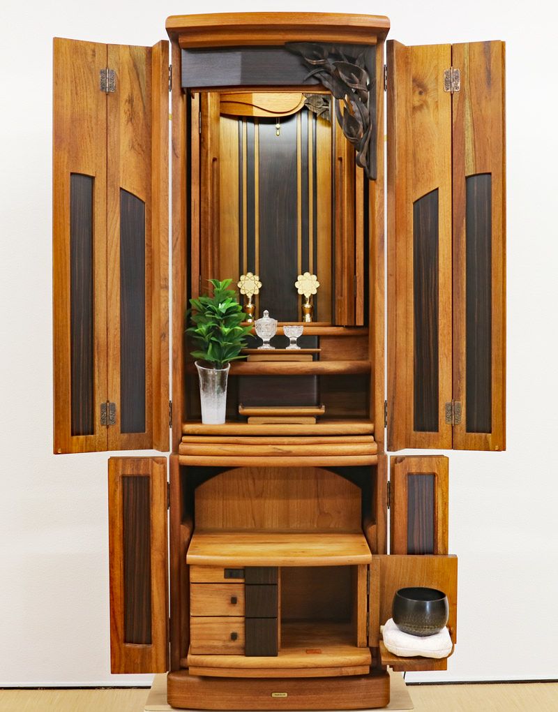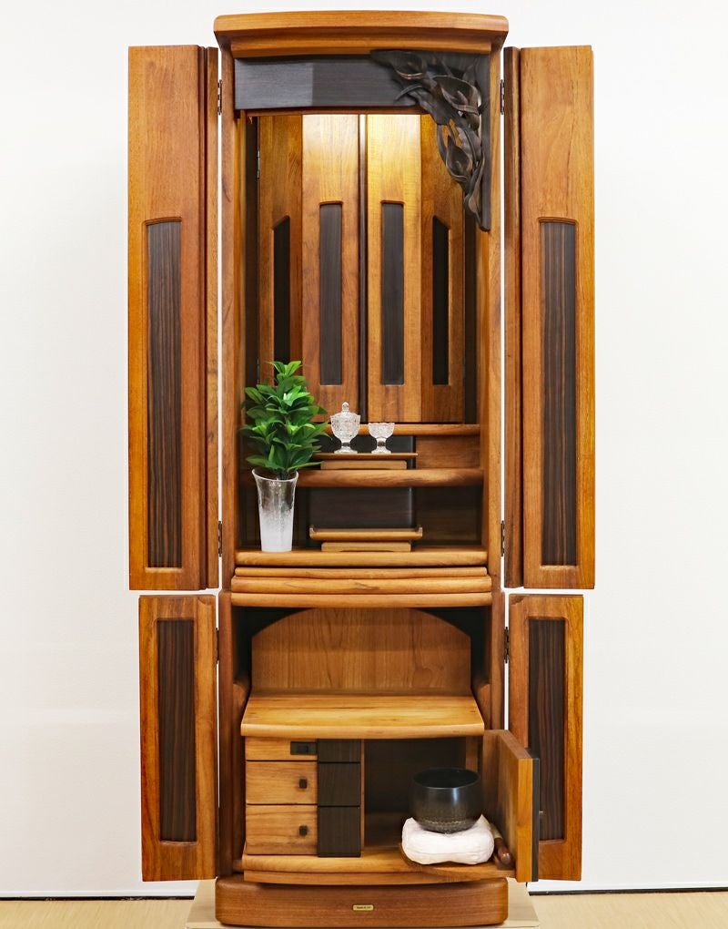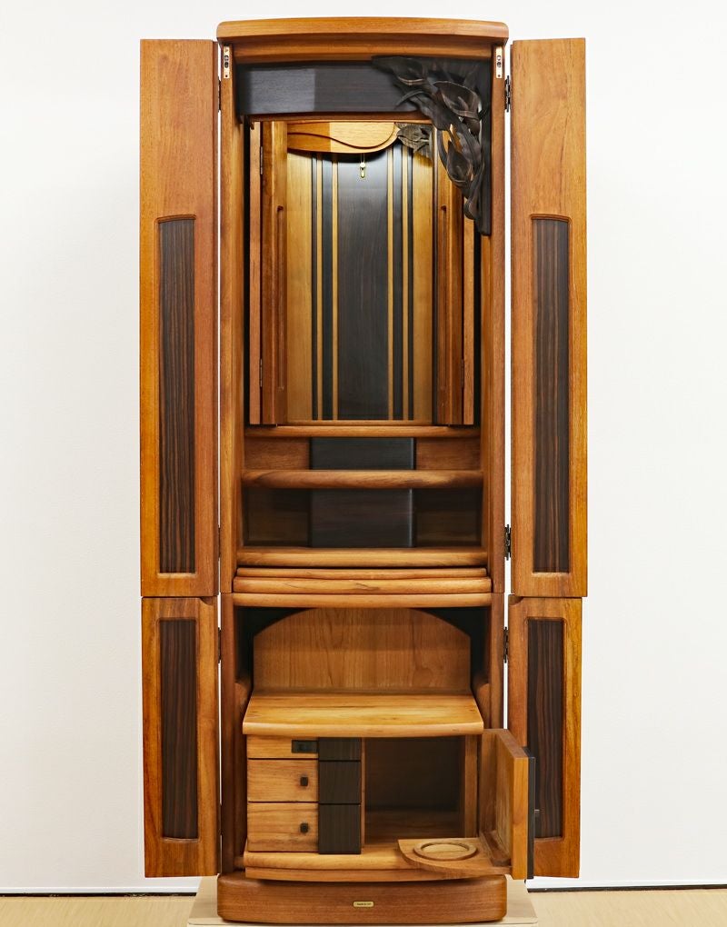 人気の商品です。扉が2箇所に分けられていますので、厨子だけ開閉ができスマートにご安置できます。洋室・一人暮らしにも最適です。