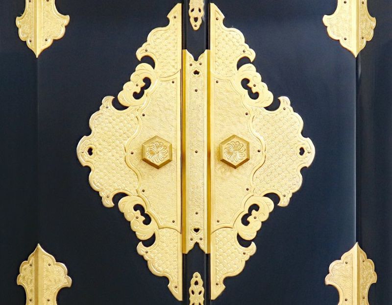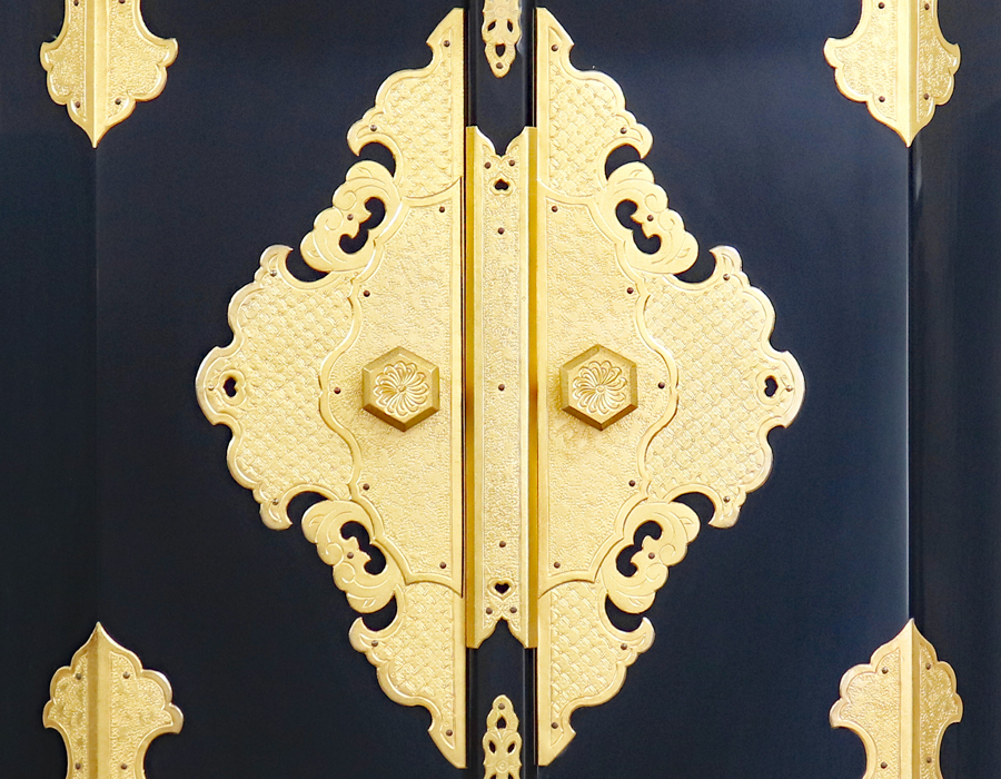 厨子内には本金箔仕上げとなっておりますので、一番大切なお厨子内でご本尊様を荘厳しています。
