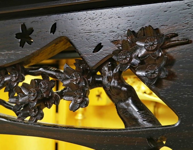 黒檀の無垢板をふんだんに使用して、桜模様の彫りを立体的に仕上げております。