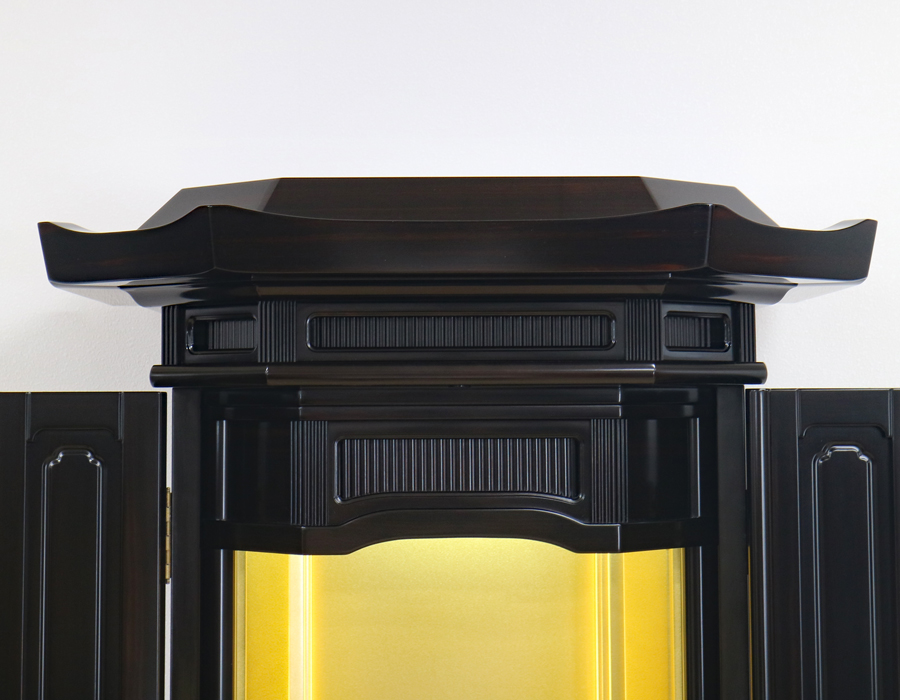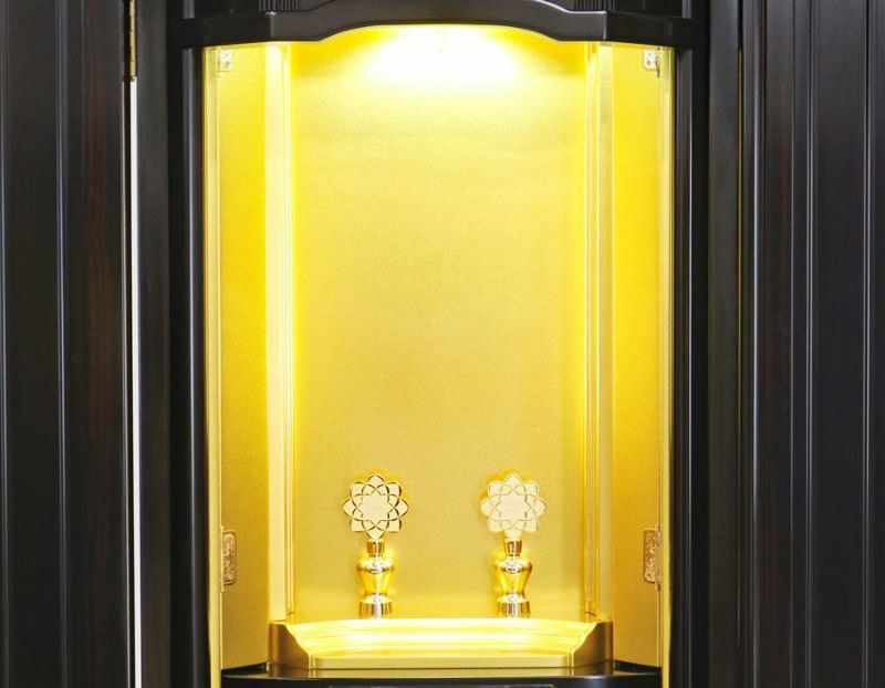 お厨子上部だけでなく、両脇にも蛍光灯照明がついている彩光厨子を採用しているので、御本尊様を明るく拝すことができます。