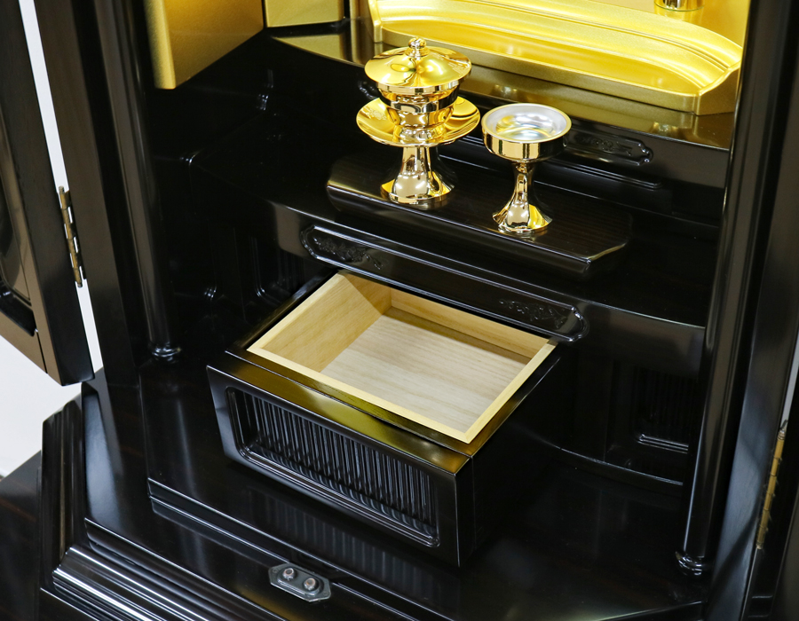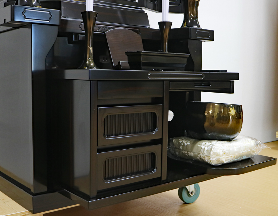 花台をスライドしますと、仏壇全体が広くなりよりご本尊様を荘厳することができます。