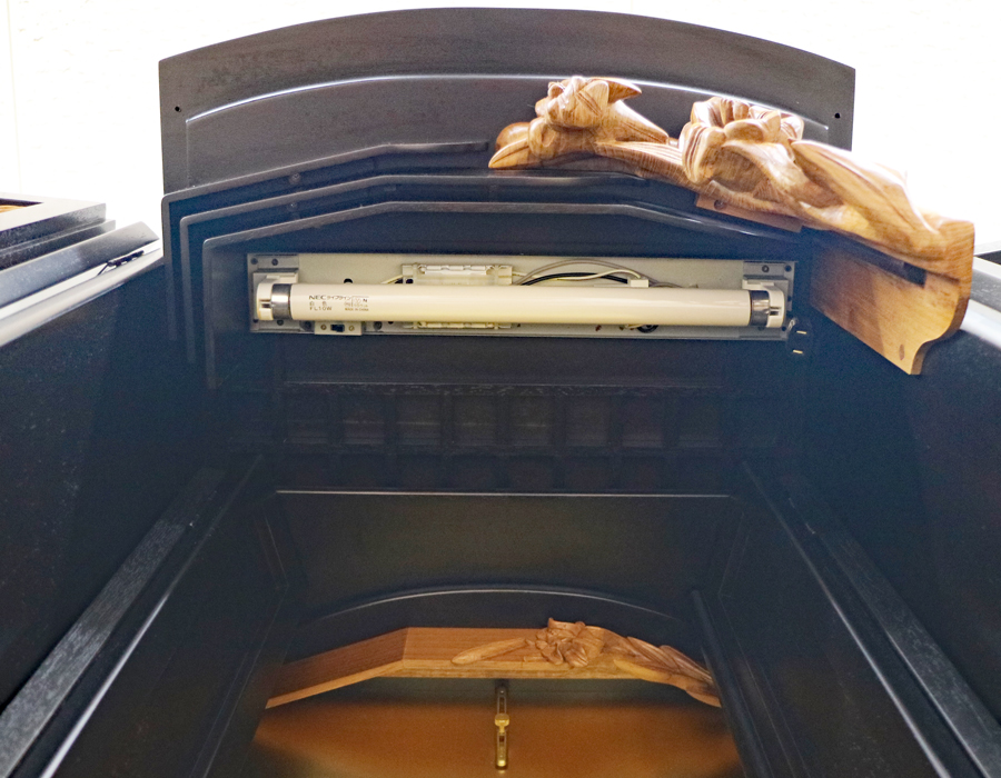 内部には蛍光灯照明(10w)も付属していますのでご本尊様を明るく照らしてくれます。