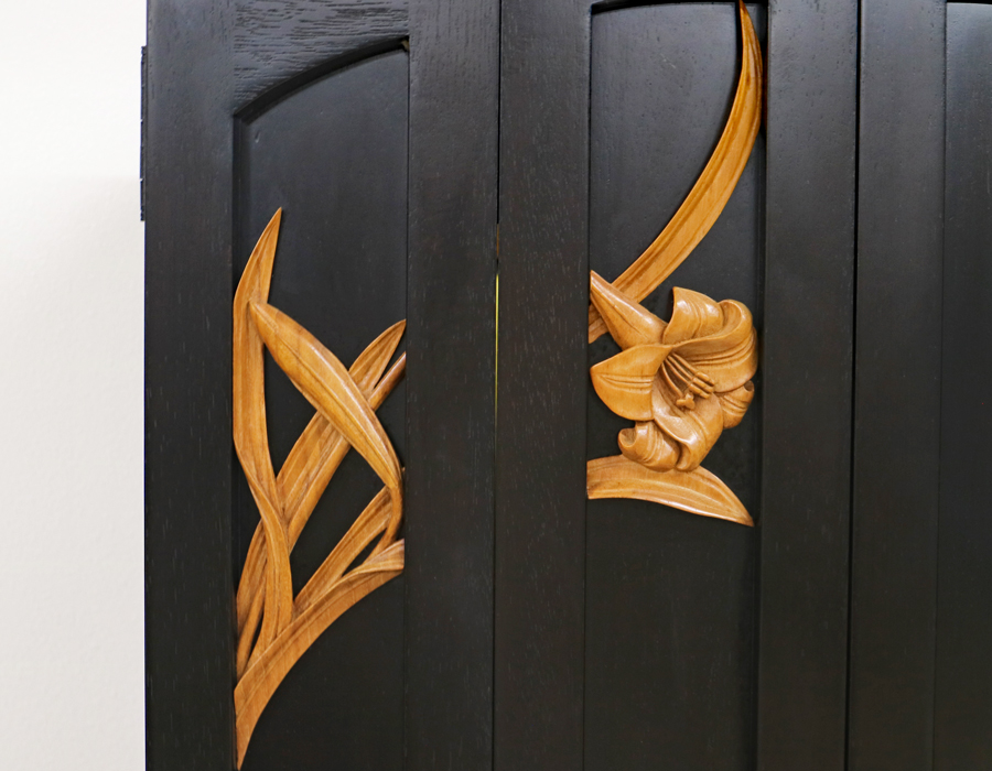 欄間同様に、大戸にも白百合の彫刻が施されております。