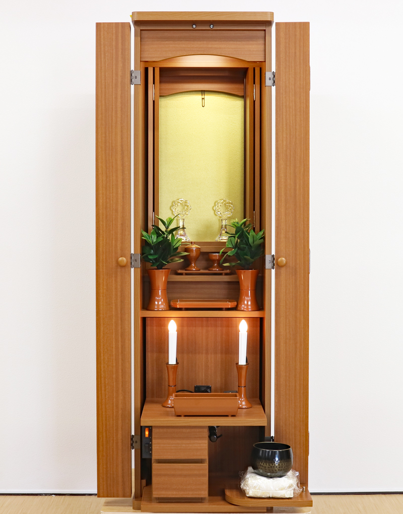 コンパクト家具調仏壇「セリオ」オーク色の電動厨子扉タイプの中古商品となります。