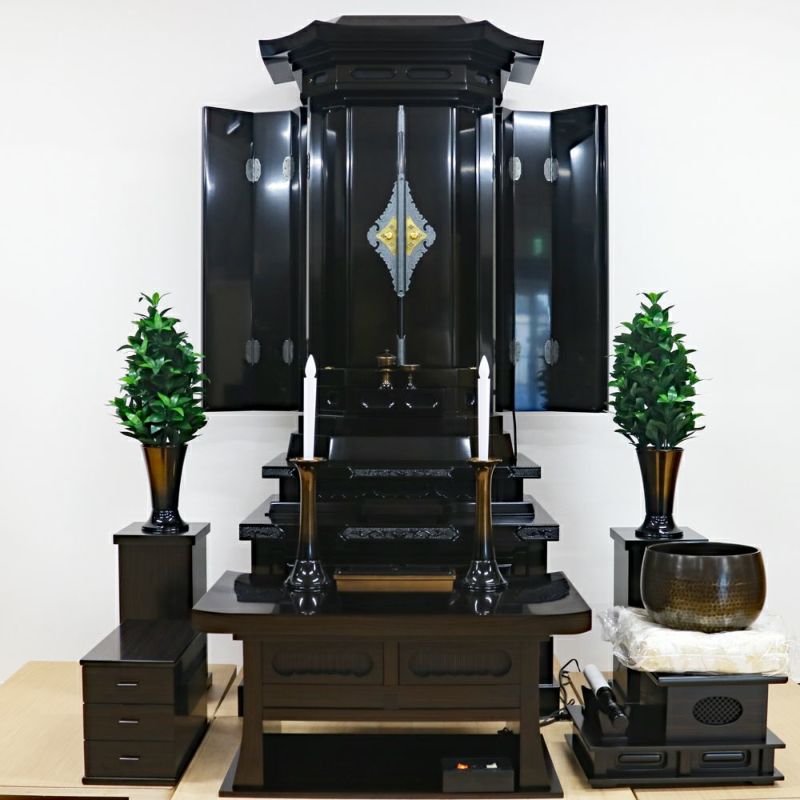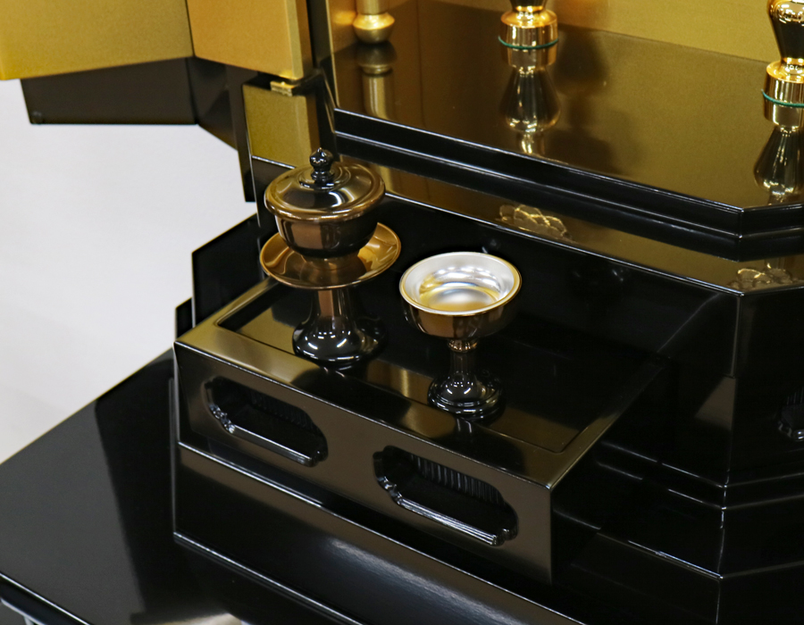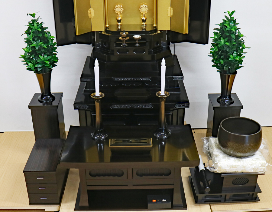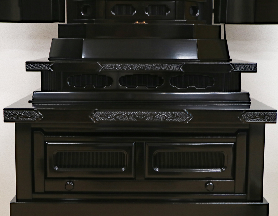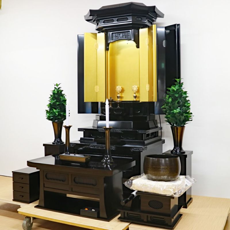 経机・花台・線香箱付きの本格的な厨子型仏壇となります。