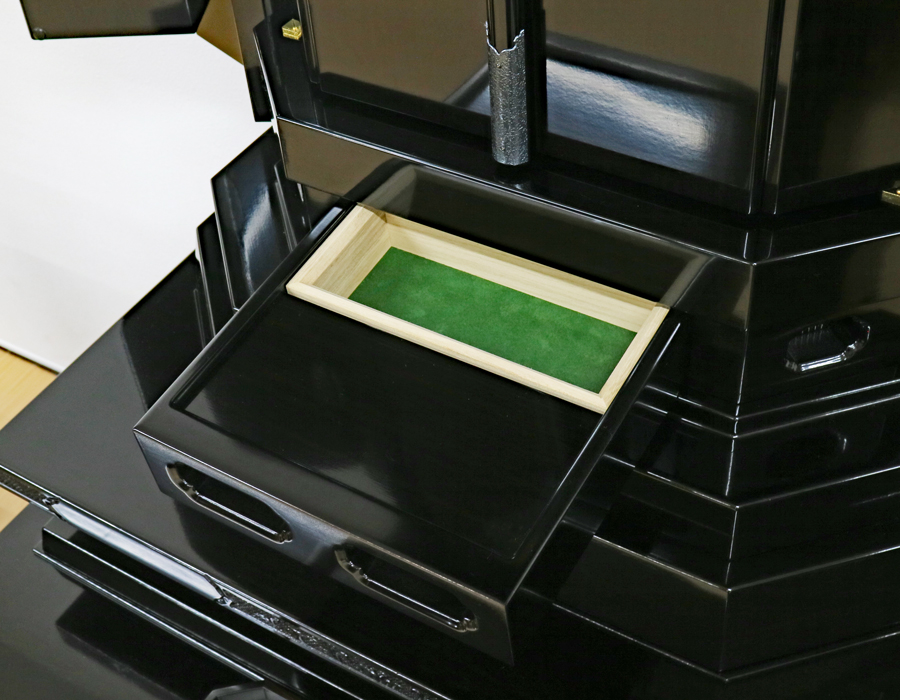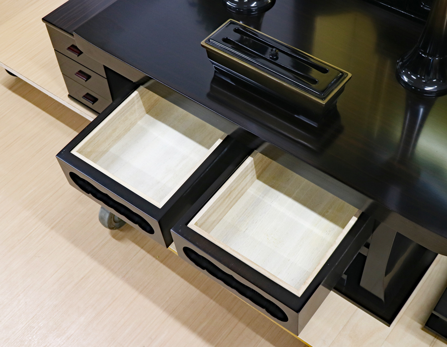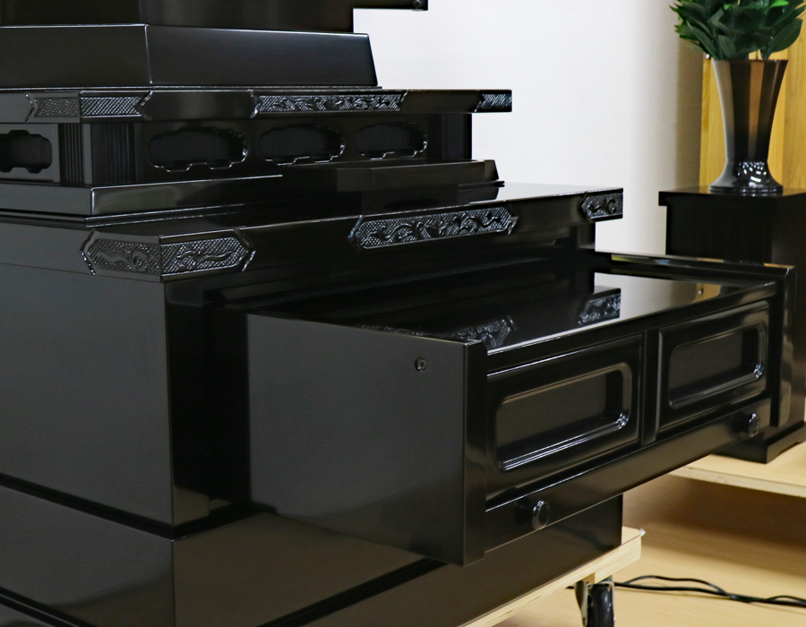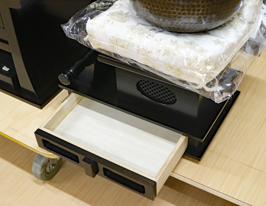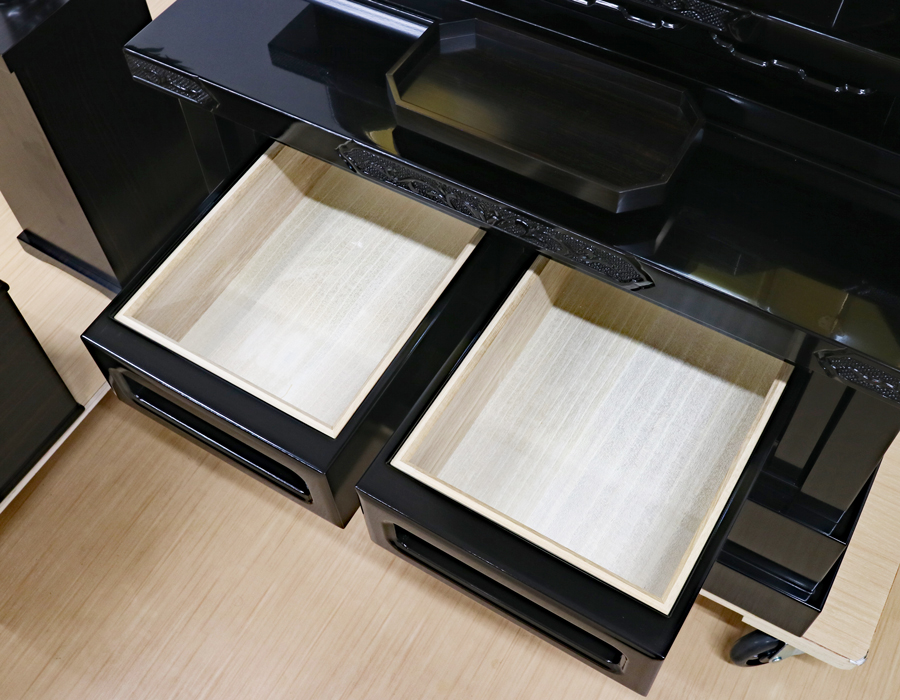 仏壇本体と経机の引き出しは中が桐箱になっております。