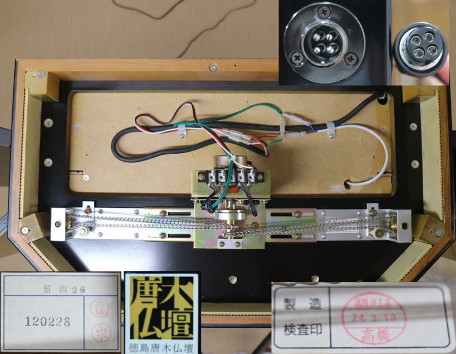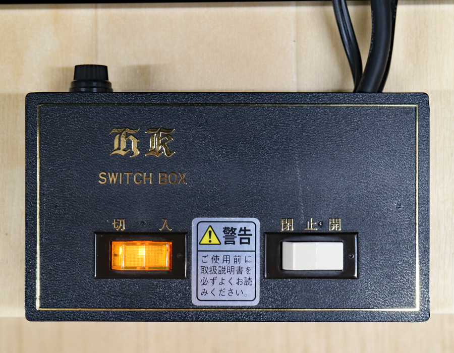 上記お写真のスイッチボックスで電源の入り切り、厨子扉の開閉を行います。