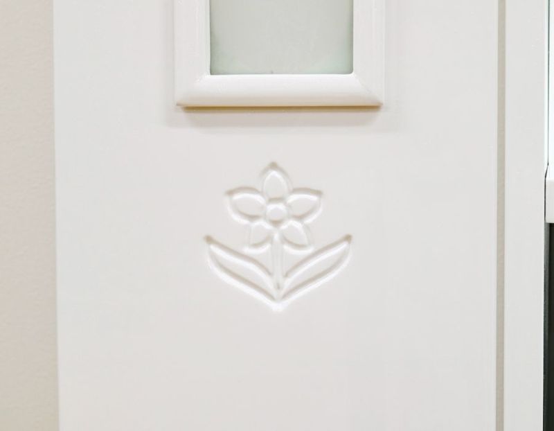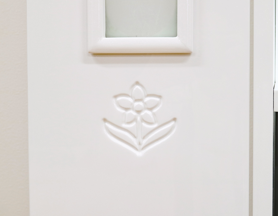 大戸内側に彫かわいらしいお花の彫が施されております。
