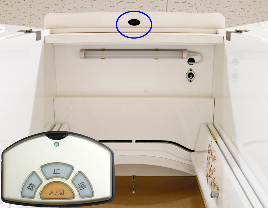 上記お写真の青丸の箇所にリモコン受信機がございます。