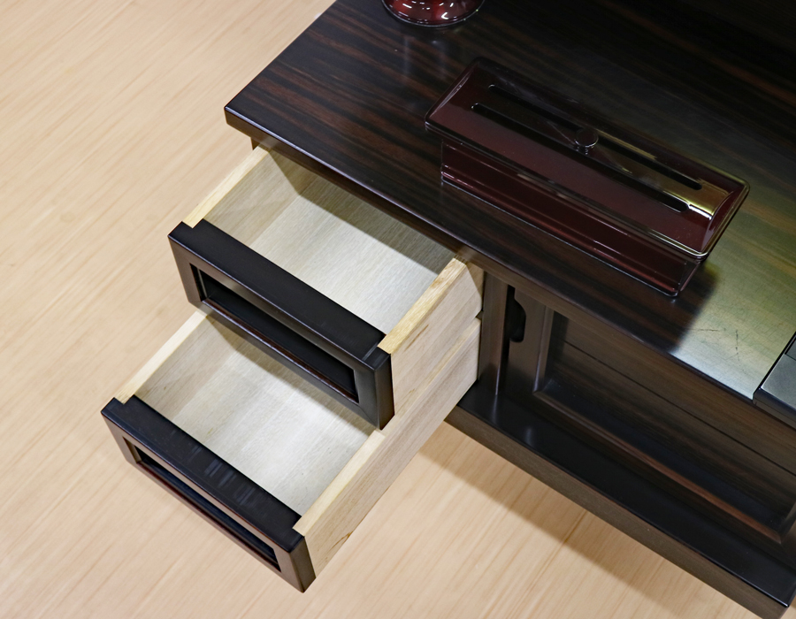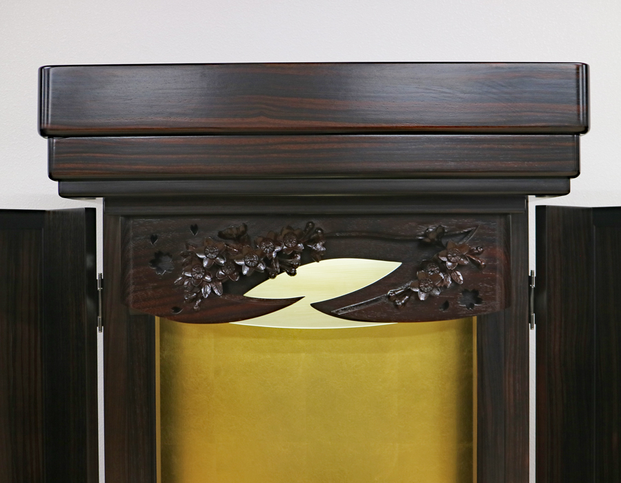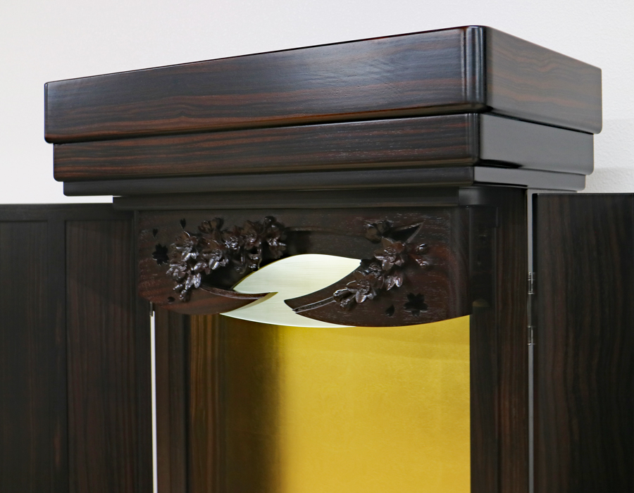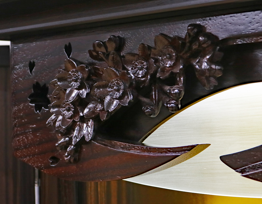 黒檀の無垢板をふんだんに使用して、桜模様の彫りを立体的に仕上げております。