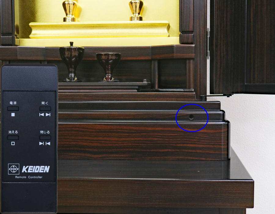 2段階調節をするスイッチはお仏壇の裏側にございます。