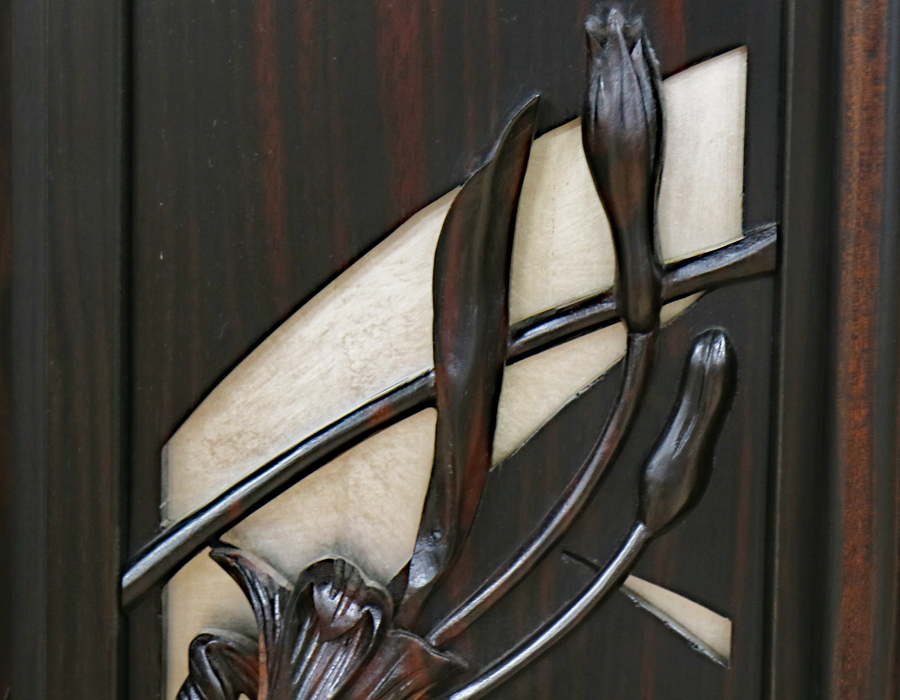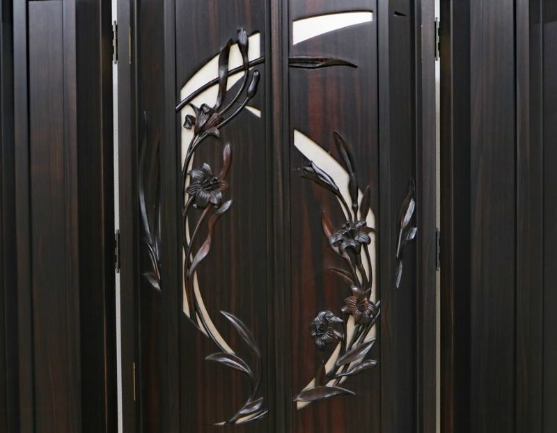 黒檀の無垢板をふんだんに使用して、白ゆりの彫りを立体的に仕上げております。