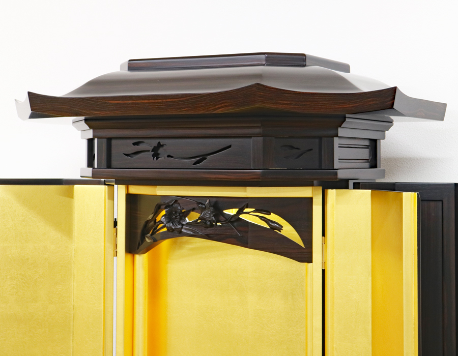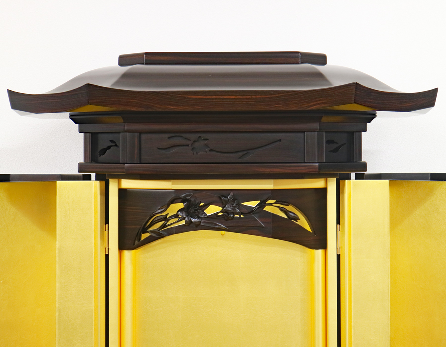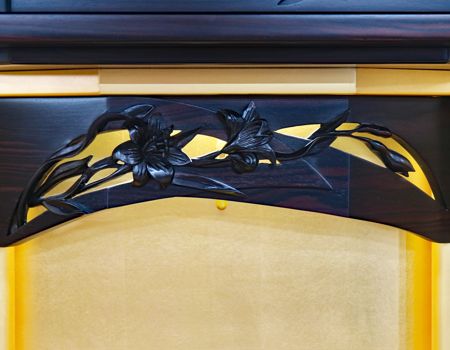 厨子扉にも、職人こだわりの白ゆりの彫が施されております。