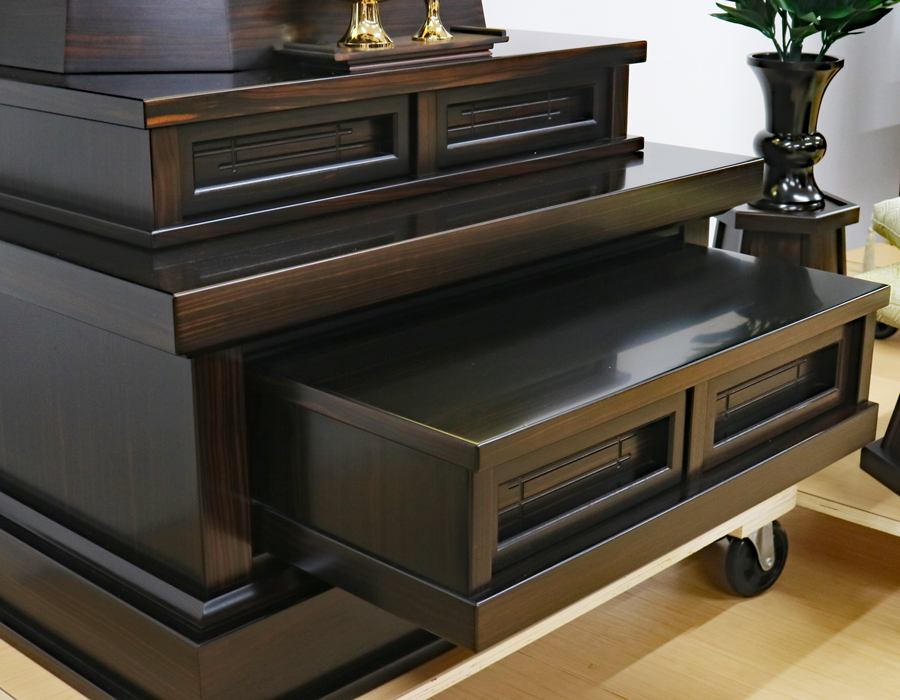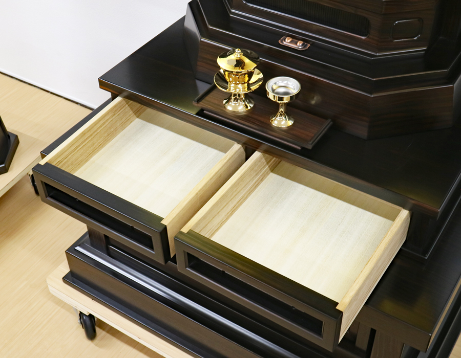 仏壇本体下部の引き出しは中が桐箱になっております。