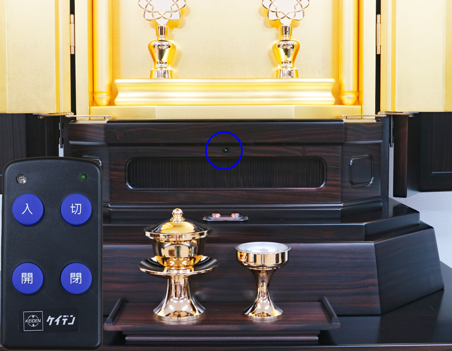 お仏壇内上部には蛍光灯6w照明が設置されております。