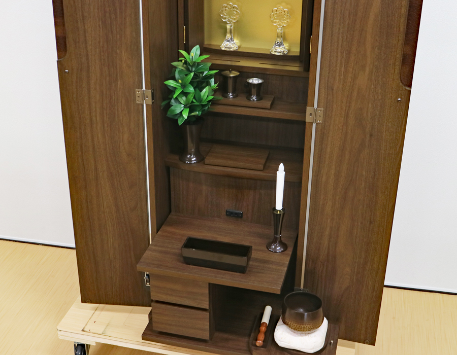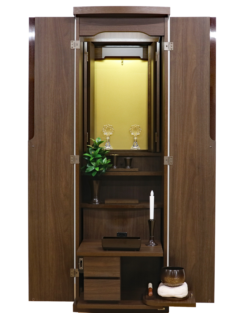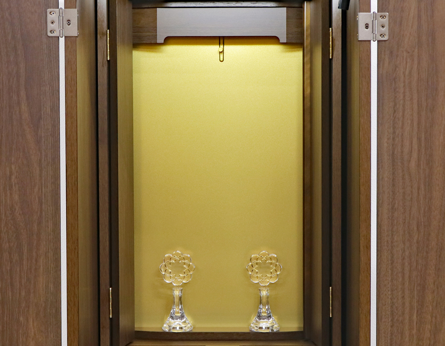 内部には蛍光灯照明も付属していますのでご本尊様を明るく照らしてくれます。