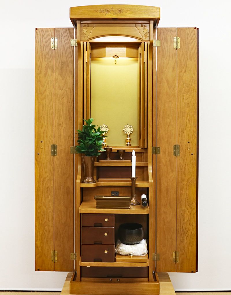 押し込み式の大戸ですので、押し込むことによって斜めからでもご本尊様を拝すことができます。