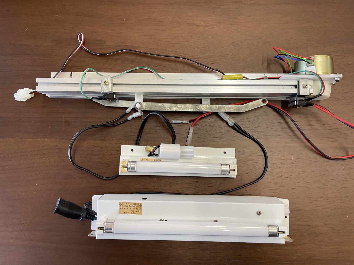 取り外し交換した古い機械と蛍光灯2灯の画像