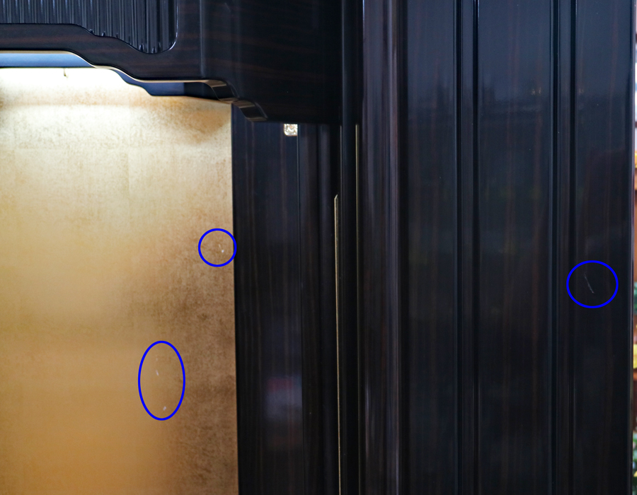 お厨子の金板・大戸に上記お写真の傷がございます。