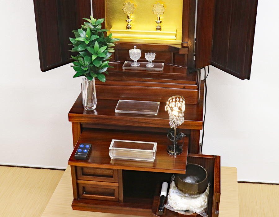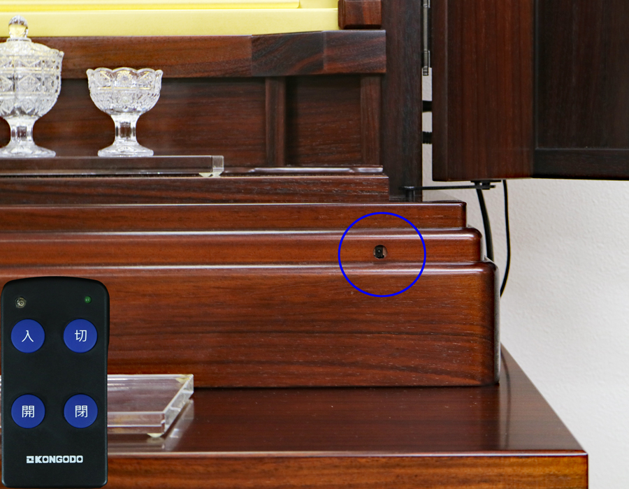 2段階調節をするスイッチはお仏壇の裏側にございます。