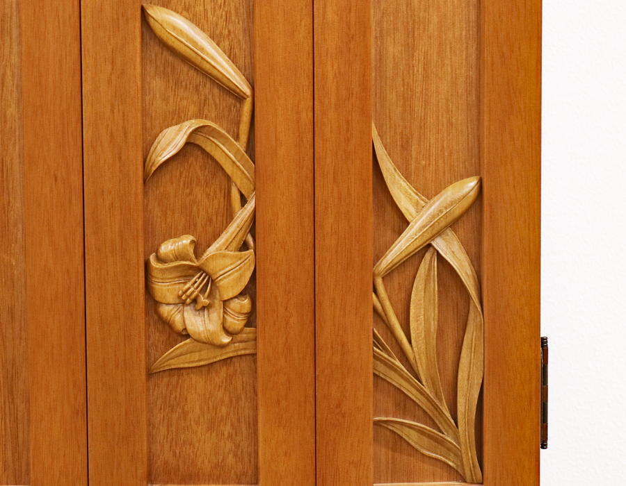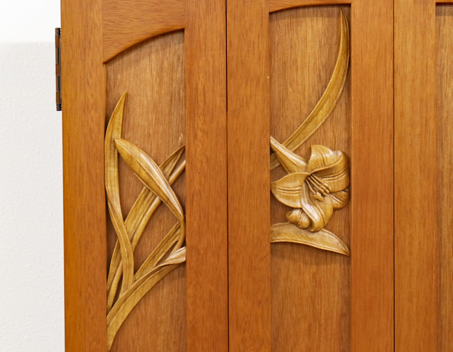 欄間同様に、大戸にも白百合の彫刻が施されております。