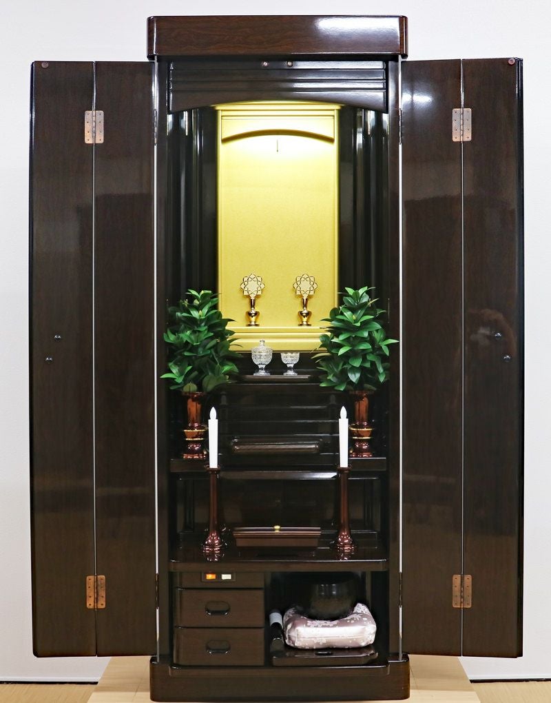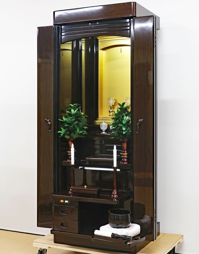 光沢のある高級感あふれるデザインの家具調中古仏壇です。