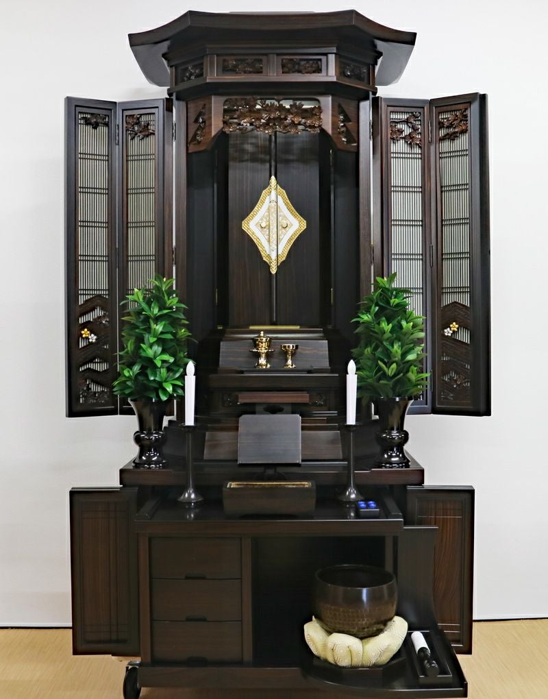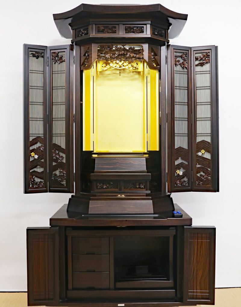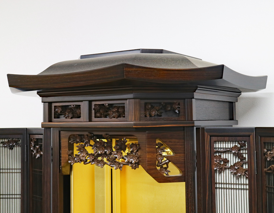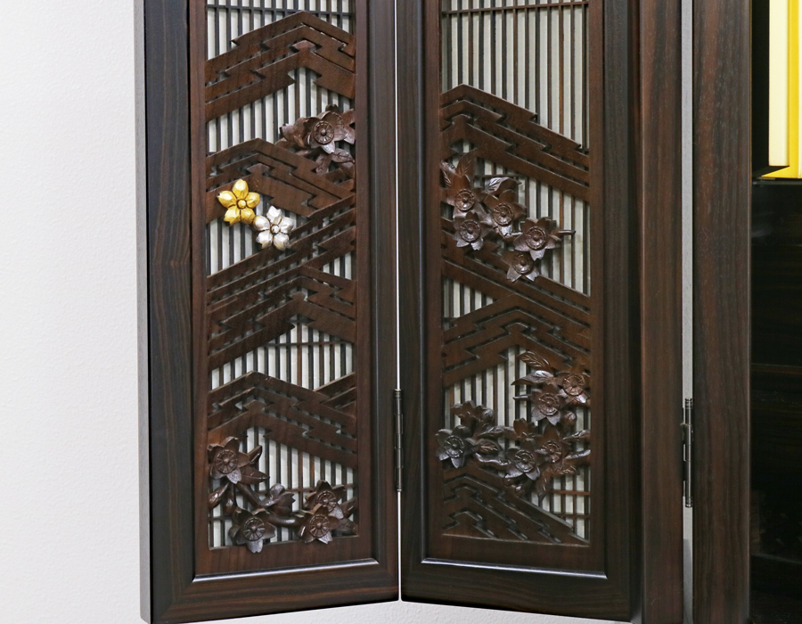 精悍な面持ちで金具一つ一つ丁寧に仕上がっております。厨子内の二重の桜の彫りがきれいです。
