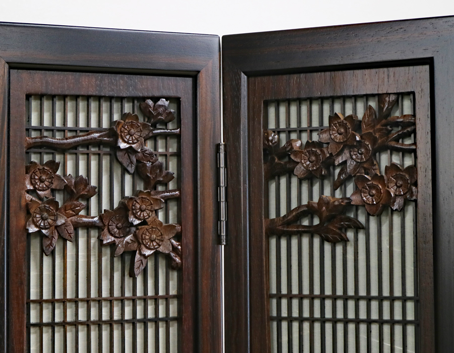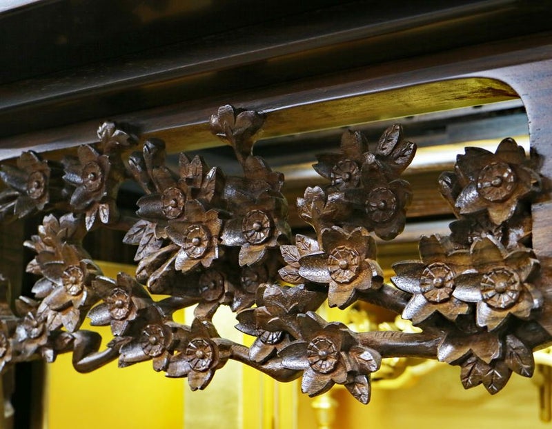 大戸内側には素晴らしい黒檀の桜の彫が施されております。
