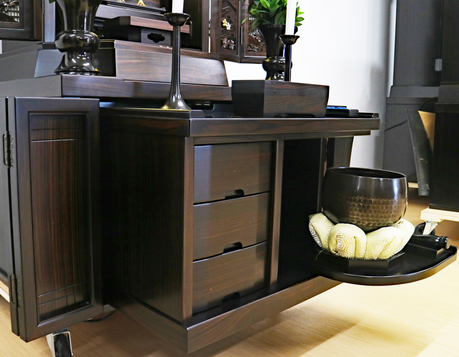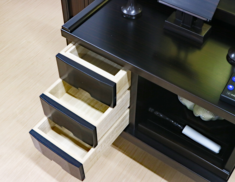 収納経机に3か所引き出しがございます。