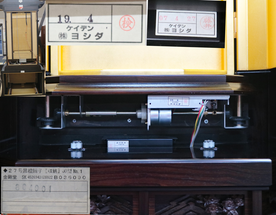 電動開閉は問題なく動作いたします。 約16年ほど前、製造のお仏壇です。