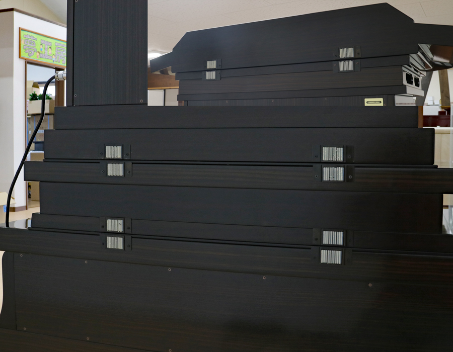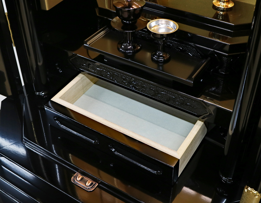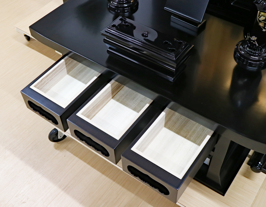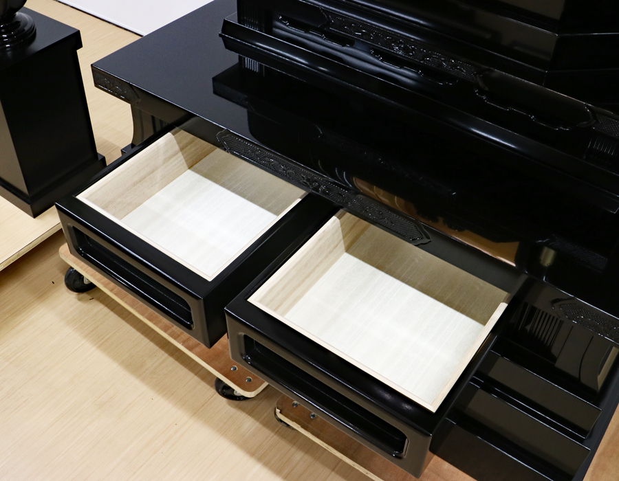 経机と下台の引き出しは、二重箱になっております。
